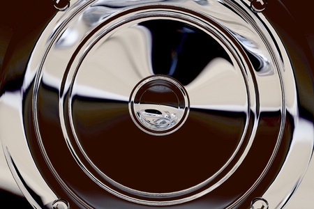 A polished chrome surface with a sleek, futuristic design and subtle textures.