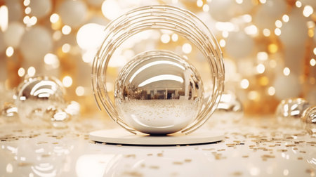 A beautiful golden spiral ornament sparkles under soft light creating a festive atmosphere perfect for New Year celebrations. Details shine brightly.