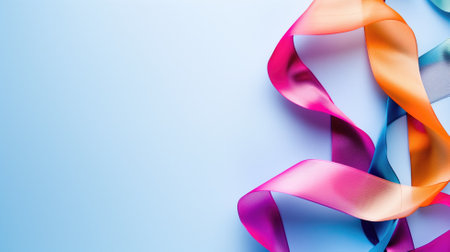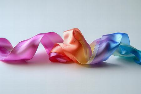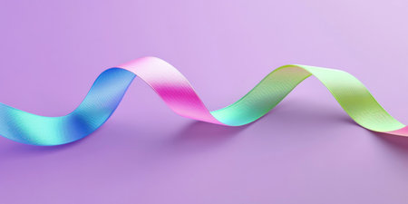 A beautiful translucent ribbon dances through the air, displaying vibrant pastel colors of blue, yellow, and pink. Ideal for creative projects.