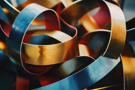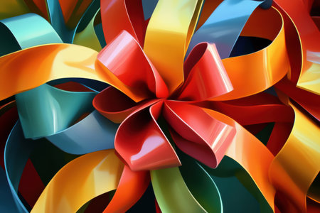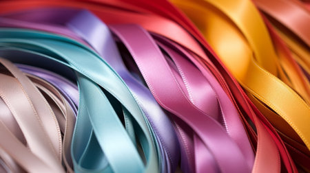 Colorful satin ribbons twisted elegantly for design and decoration. With Generative AI technology.