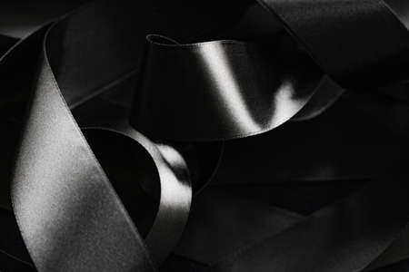 Black and white silk ribbon as background, abstract and luxury brand designs