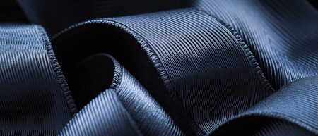 Abstract flowing blue satin ribbons with silver trim on a dark blue background. Clear details and vibrant colo...