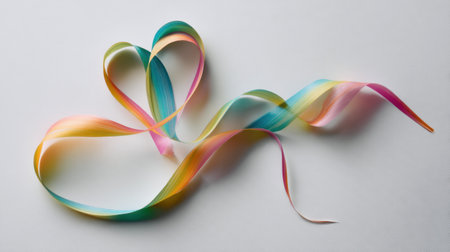 A vibrant ribbon gracefully forms a heart shape on a soft background, conveying themes of love, creativity, and joyful emotions in design.