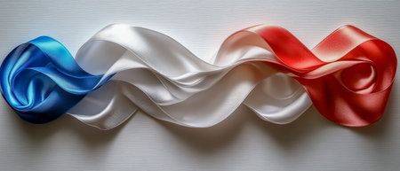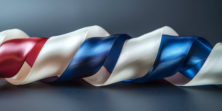 Presidents' Day. Stylized satin ribbons in red, white, and blue colors elegantly arranged on a clean, textured surface