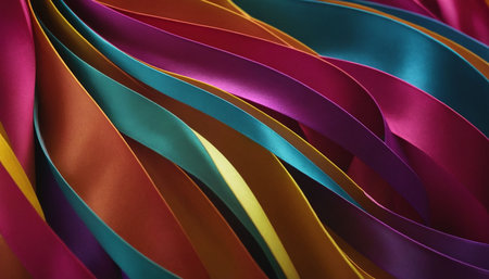 Ribbons showing scattered colorful satin ribbons in a vibrant chaotic arrangement forming an abstract background....