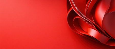 A close-up shot of a glossy red ribbon elegantly curling and twisting across a rich red backdrop, creating a sense of luxury and celebration.