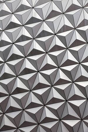 Silver wall facade with geometric shapes triangle elements. Abstract architecture details pattern. Minimal abstract background