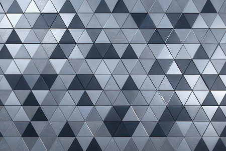 A metal wall made of many triangles. Triangles with sharp corners and gradient transitions.