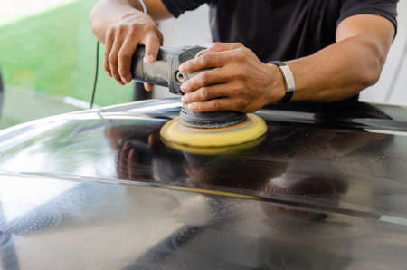 Car detailing - Man hands holding the work tool polish the car.Buffing and polishing car.