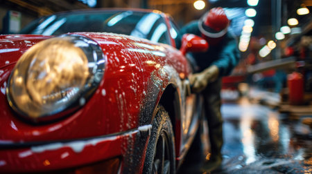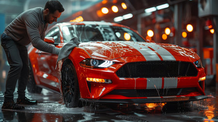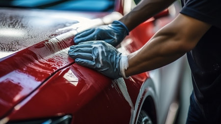 automobile shine garage transportation cleaning hand car vehicle auto service. Generative AI.