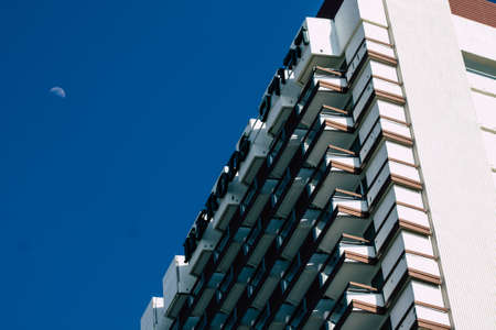 Modern apartment buildings on a sunny day with a blue sky. Facade of a modern apartment building