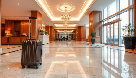Interior lobby at luxury hotel. Scene is calm and relaxing