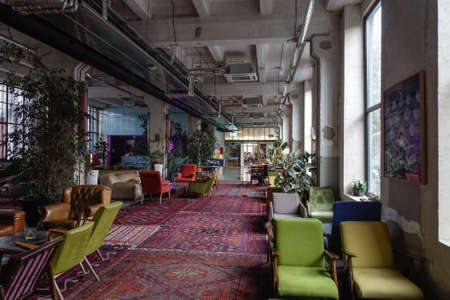 Tbilisi, Georgia - Sep 22, 2018. Living room of vintage hostel in Tbilisi Downtown. Tbilisi is Georgia ancient and vibrant capital city spreads out on both banks of the Mtkvari River.