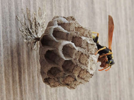 Wasp curly under the roof of a hive for posterity