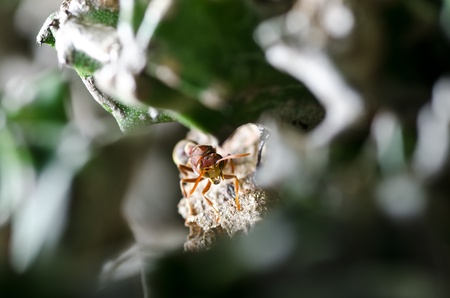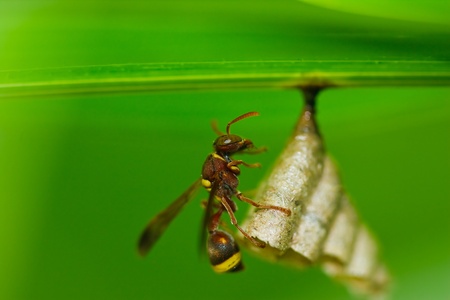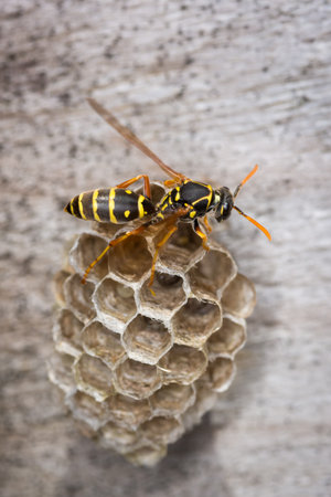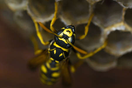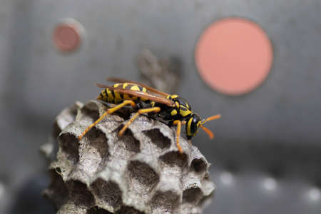 Macro of a wasp on its wasp nest