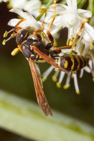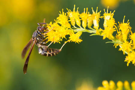 Yellow Jacket (Wasp) / Wasp is collecting pollen and nectar from flowers.