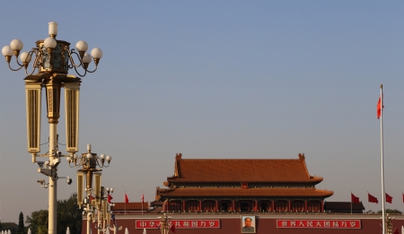 Beijing / China - September 27, 2014: The Tiananmen or the Gate of Heavenly Peace, monumental gate in the centre of Beijing, widely used as a national symbol of China
