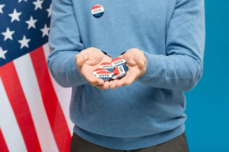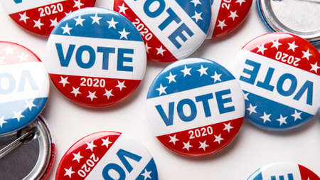 Vote Buttons Badge Isolated on White Background, 2020 US elections, panorama, copy space