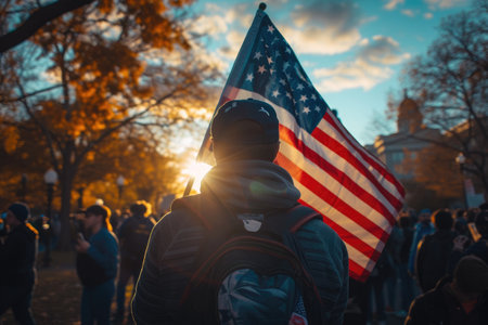 USA flag and people,Independence Day.National Day celebration,silhouette,generative ai