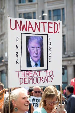 London, United Kingdom, 13th July 2018:Placards carried by anti Donald Trump protesters marching in central London