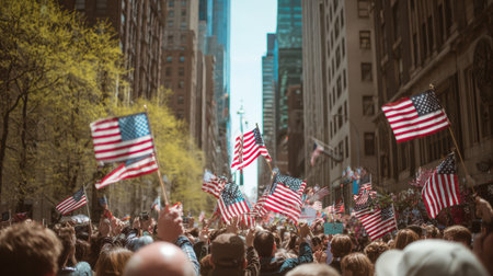 American flags in New York City parade