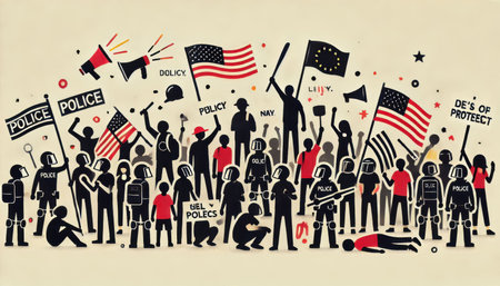 group of people protesting on the square illustration content created with generative AI software.