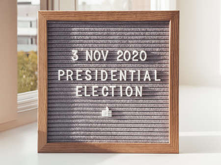 Announcement of USA Presidential Election at 3rd November 2020. Call to go to the vote. Letter board on white window sill.