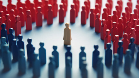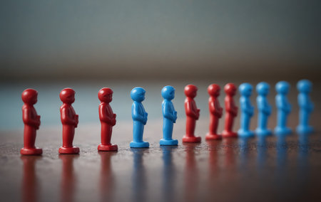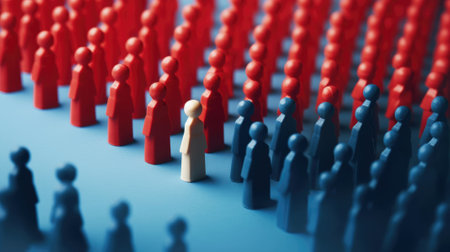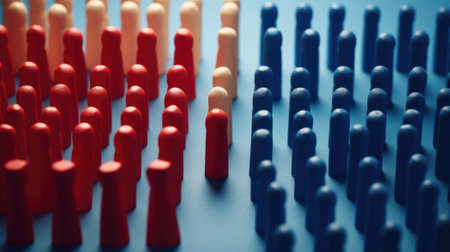 discrimination conceptual image, people divided, miniature toy model, red and blue color. beautiful Generative AI AIG32