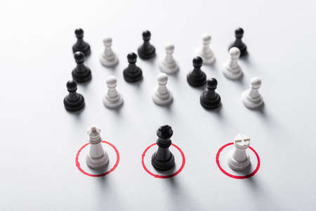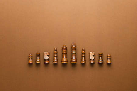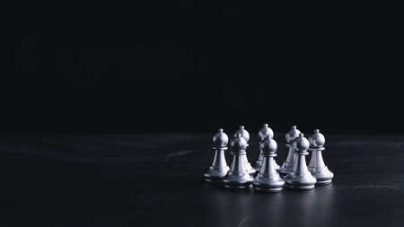 Close-up first pawn chess with a team standing in line concepts of business team and leadership strategy and organization risk management or strategic plan and professional teamwork.