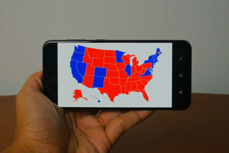 A picture smartphone with US 2020 Election map pass result. People in US is waiting for the next president.