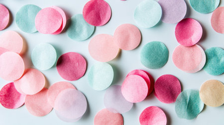 A vibrant assortment of colorful paper circles scattered across a light background, ideal for adding a playful touch to any celebration or event decor, enhancing the festive mood.