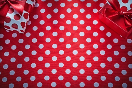 Christmas presents on polka-dot red table cloth celebrations concept.