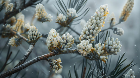 Pollen falling from conifer tree.
