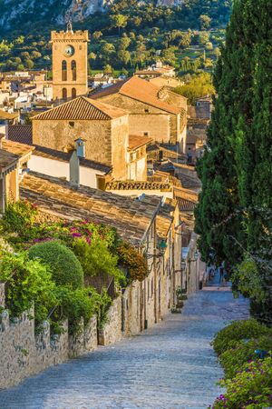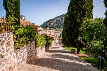 Beautiful views of a street in the picturesque and famous town of Valldemosa, Mallorca, Balearic Islands, Spain