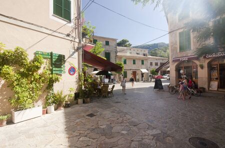 Deia, Mallorca, Spain - March 19 2018: tourists walking in the streets of Deia town at the west coast of Mallorca
