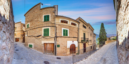 View of a medieval street in the Old Town of the picturesque Spanish-style village Fornalutx, Majorca or Mallorca island