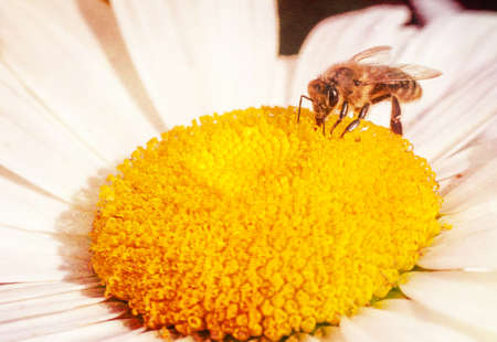 Chamomile Flower and Bee taken pollen