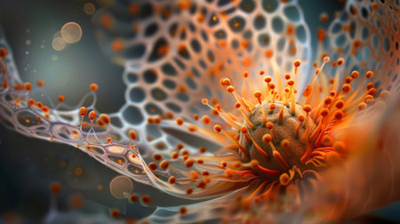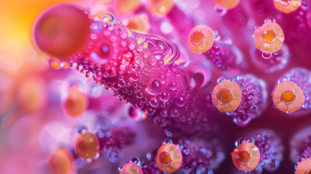 An artistic representation of microscopic structures, showcasing vibrant colors and intricate details, offering a glimpse into the unseen world.