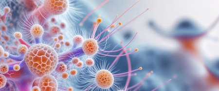 Microscopic close up of bacteria interacting with teeth in a detailed biological environment