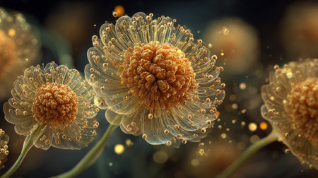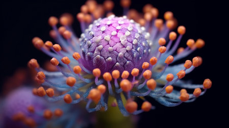 a close-up portrait photograph showcasing the intricate details of unknown chlamydia trachomatis biological virus alien flowers. the image captures the brittle yet beautiful and elegant nature of these flowers, with vivid contrast and depth of field. shot on a 100mm lens at f/2.0, the photo exhibits rich black tones and crisp details. the natural lighting adds a realistic and impressive touch to this 8k uhd
