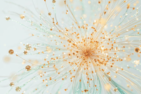 Microscopic pollen grains with spikes and golden dust .Generative AI