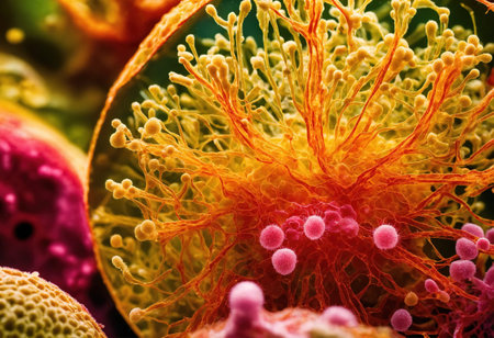 AI Generated. Colorful Microscopic View of Fungi and Mold Structures