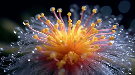 Close up of a flower releasing pollen, showing the beauty and intricacy of nature's reproductive process. Ai generated image
