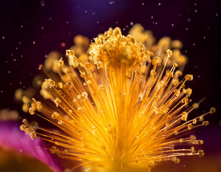 Vibrant Close up of Golden Flower Stamens Pollen Macro Photography Nature Detail