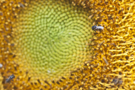 Bee on sunflower close-up