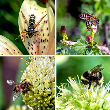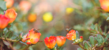Bee gathering nectar from flowers in summer garden. Honey bee collecting nectar on flowers.