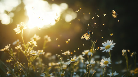 Generative AI : Beautiful Butterfly on Wild Daisy in nature