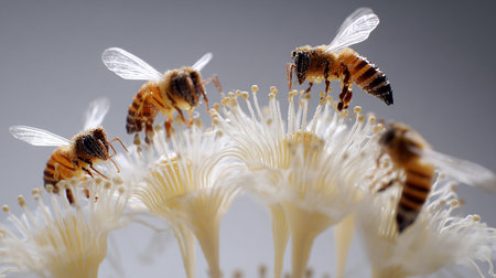 Discover the enchanting scene of bees diligently pollinating vibrant pink flowers, highlighting the essential role of pollinators in maintaining ecological balance and beauty.