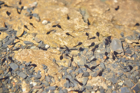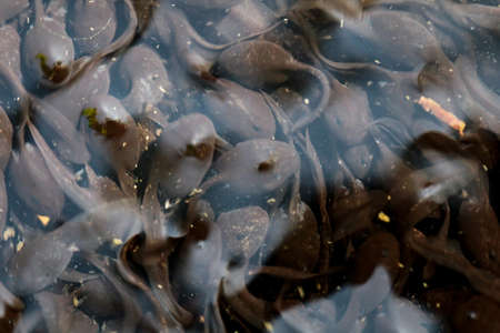 Small tadpoles are future frogs in the clear water of a lake or pond. A little new life in the wild.