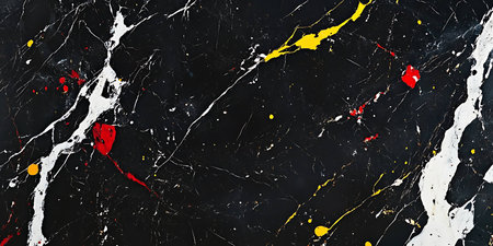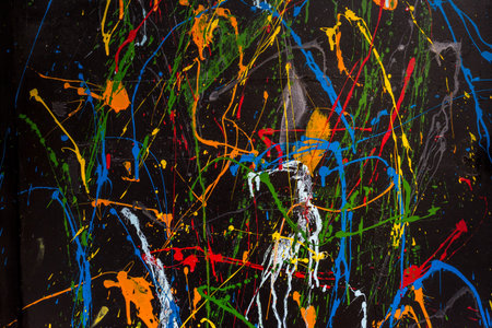 splashed of spilled yellow green red black paint. expressionism